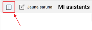 - Sarunas - tiek attēlotas lietotāja veiktās sarunas ar MI asistentu. Noklikšķinot uz attiecīgo ierakstu, saruna tiek atvērta sarunu logā, un lietotājam ir iespējams sarunu par attiecīgo jautājumu turpināt.