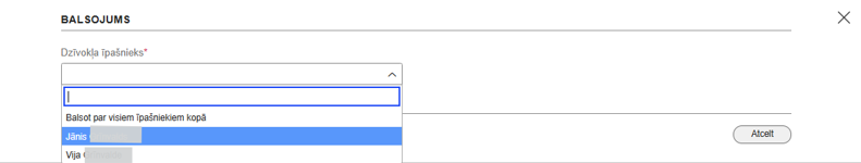 - Ja dzīvoklim ir vairāki īpašnieki, lietotājs var norādīt, ka vēlas ievadīt vienu balsojumu par visiem dzīvokļa īpašniekiem.
